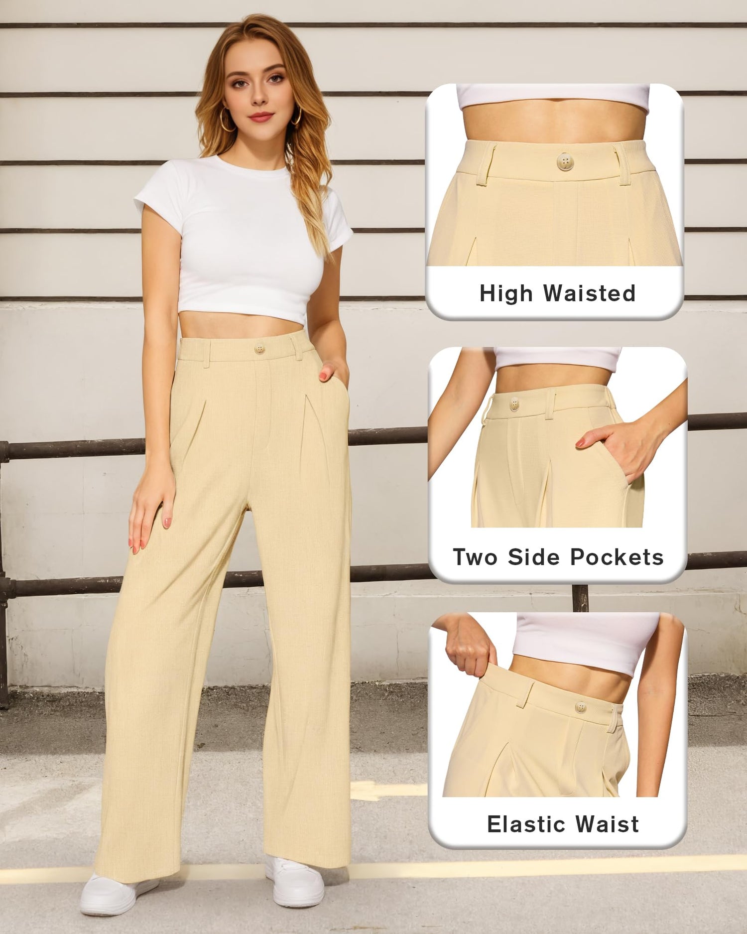 CLOZOZ Wide Leg Trouser Pants for Women High Waisted Casual Lounge Pants Business Work Pants Palazzo Slacks with Pockets